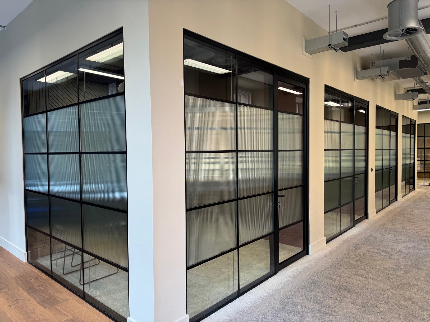 - Flexibility: Glass office partitions are designed to be bespoke to your needs and can be customised to fit any office size or layout, offering both fixed and demountable options.